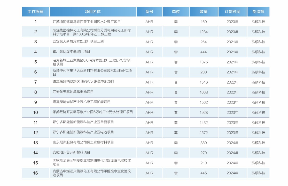 泓碩科技自主研發生產的“高效旋流曝氣器”在國家重大項目中廣泛應用,并獲得客戶的一致好評。同時,公司擁有一支具備十年以上經驗的專業從事水處理 設備生產及水處理工程設計、施工、調試的團隊,特別是在工業廢水行業,擁有豐富的工程經驗和業績。